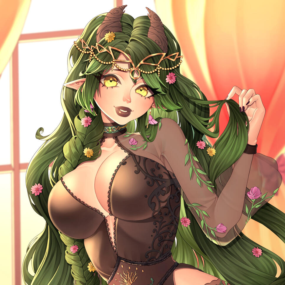 Ethyreil, who also goes by Ethy, arrived in the human world much later than her sister. While she preferred the solitude of the forest realm and The Withering Bog (which lent itself nicely to her pursuit of knowledge) as opposed to the chaos of the human world, she missed her sister dearly and wished to no longer be apart - she also found that being separated weakened the power of both her and her twin. After arriving, she desired to learn all she could of the human world, much as she had done in the forest realm and found that there was more to this world than she had previously believed.She discovered that she could learn about the human world’s thoughts on magical realms and the beings within them through RPGs and cozy games, which also served to remind her of the more fantastical and comforting aspects of The Withering Bog.